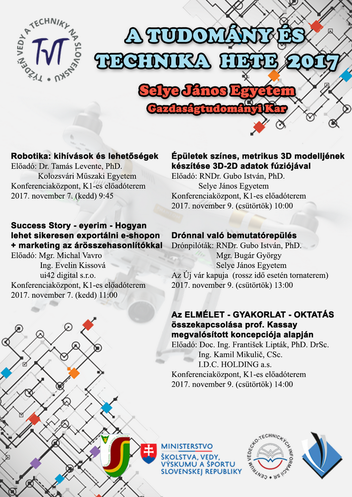A SJE Gazdaságtudományi Kara ez éven is érdekes előadásokkal, szemináriumokkal, műhelyekkel kapcsolódik be a a Tudomány és Technika Hete rendvezménysorozatába, amelyet a Szlovák Oktatási, Tudományos, Kutatási és Sportügyi Minisztérium és a Tudományos és Műszaki Információs Központ (CVTI SR) szervez Szlovákia-szerte. A hagyományosan minden évben megrendezett Tudomány és Technika Hetének célja, hogy javítson a tudomány és technika társadalmi megítélésén, prezentálja az eredményeit, felkeltse a fiatalok érdeklődését a tudomány és a műszaki tárgyak iránt, informálja a nyilvánosságot a tudomány és technika új ismereteiről, a tudomány és technika támogatásának szükségességéről, mert ezek nélkül nehezen megoldhatóak az új globális problémák és kihívások.