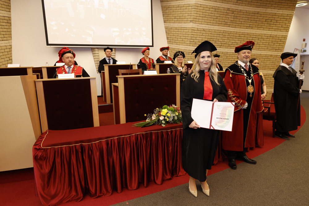 A diplomaátadó ünnepség keretein belül a tavalyi évben végzett doktoranduszok közül négyen vették át ünnepélyesen a tanulmányaik sikeres befejezését igazoló oklevelet.